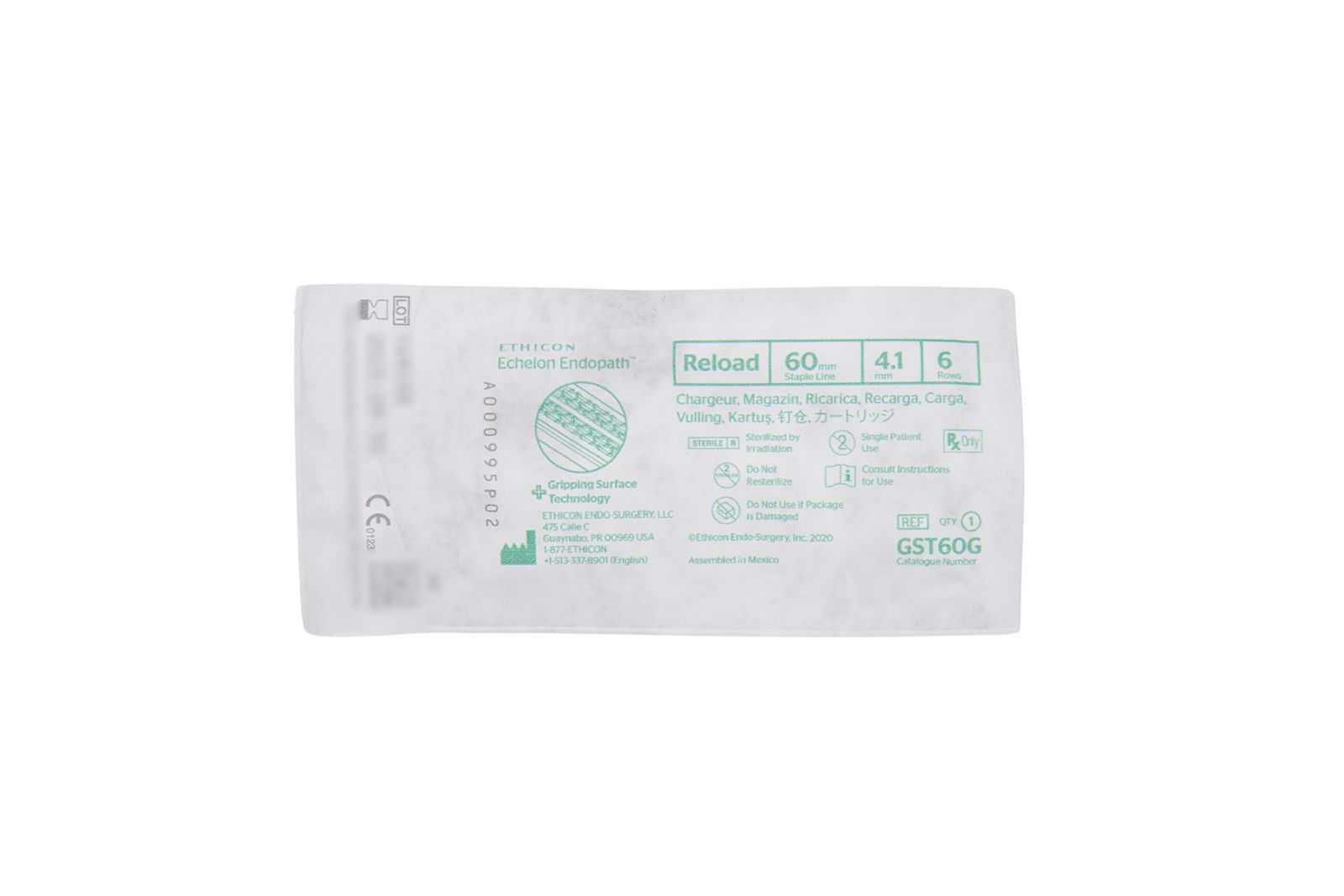 El Ethicon ECHELON FLEX™ GST System Reload GST60G es un cartucho de recarga diseñado para utilizarse con las grapadoras quirúrgicas ECHELON FLEX™ Powered Staplers. Este dispositivo permite grapar y cortar tejido de manera simultánea, creando líneas de sutura mecánica consistentes durante diversos procedimientos quirúrgicos.